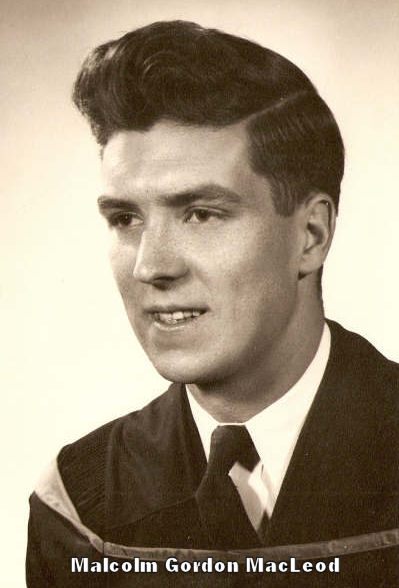 244. "Mac" Malcolm Gordon MacLeod [image] (William Ray , "Jack" John Alexander , Mary , John ) was born on 18 Jun 1927 in North Vancouver BC. He died on 24 Nov 1952 in Comox BC. The cause of death was Lancaster bomber crash.
